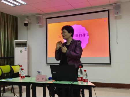 刘梦教授首先引导学生对国内一些流行的社会工作概念进行了反思性批判,并基于2015年国际社会工作联盟关于社会工作最新界定,阐述了她对社会工作定义的独特理解。其次,她从“修身、齐家、治国、平天下”四个方面对“社会工作教我们什么”这一议题进行了深入浅出的剖析。她也勉励在校社会工作专业学生“干一行,爱一行”,不断拓宽自己的视野,并积极投身社会实践。