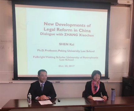 2017年10月30日12点,色播 教师张晓晨作为宾夕法尼亚大学色播 博士生(SJD Candidate)对到访宾大色播 的富布莱特访问学者,北京大学色播 沈岿教授进行了访谈。