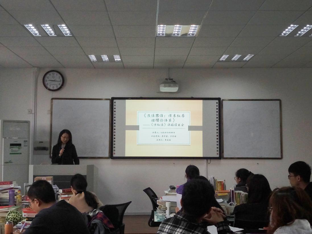 16级非诉实验班学生在B楼303教室举办了一场《债权法》课程读书会,围绕《民法思维:请求权基础理论体系》进行专题读书研讨。本次读书会由朱晶晶博士主持,康莉莹教授、于雪锋博士等教师和2016级非诉实验班全体同学参与。