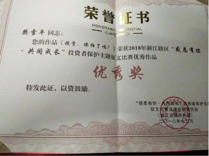 浙江证监局为了进一步做好浙江投资者教育和保护工作,在全社会营造尊重投资者,保护投资者的良好氛围,联合相关单位举办了“感恩有你·共同成长”投资者保护主题征文比赛活动。近日传来消息,色播