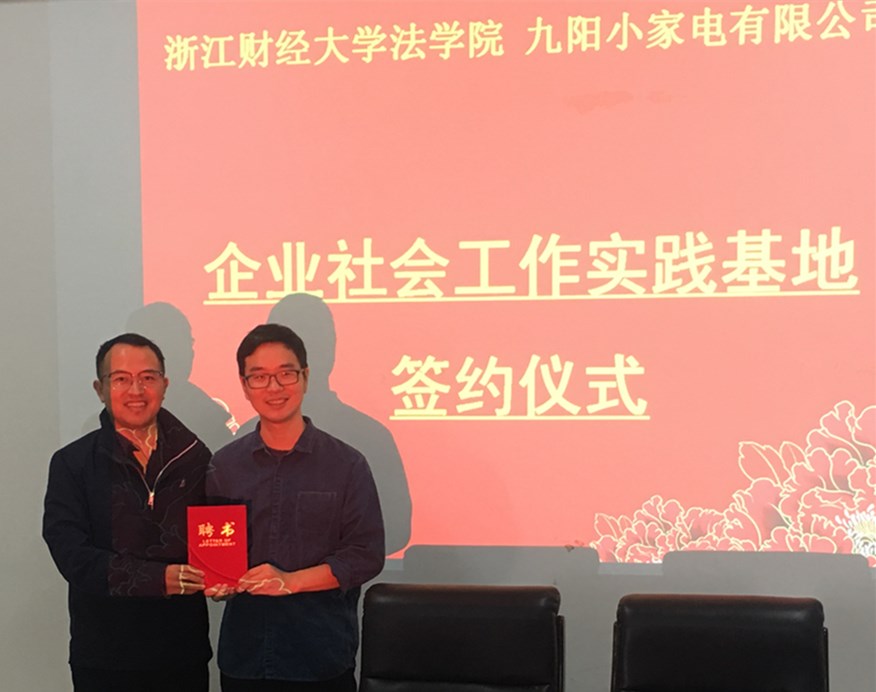 与杭州九阳小家电有限公司企业社会工作实践基地》协议,此协议致力于企业社会工作实践课程、学生参与企业公益活动等方面的合作。九阳股份公益部总监、杭州九阳小家电有限公司指定出席人黄晖,色播