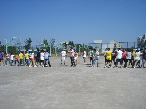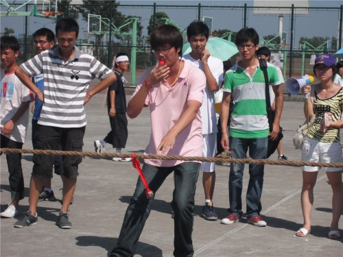 在风雨篮球场举行新生拔河赛)