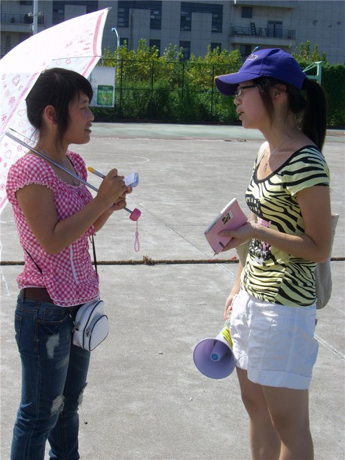 (学生会主席王巧辉为新生当裁判)