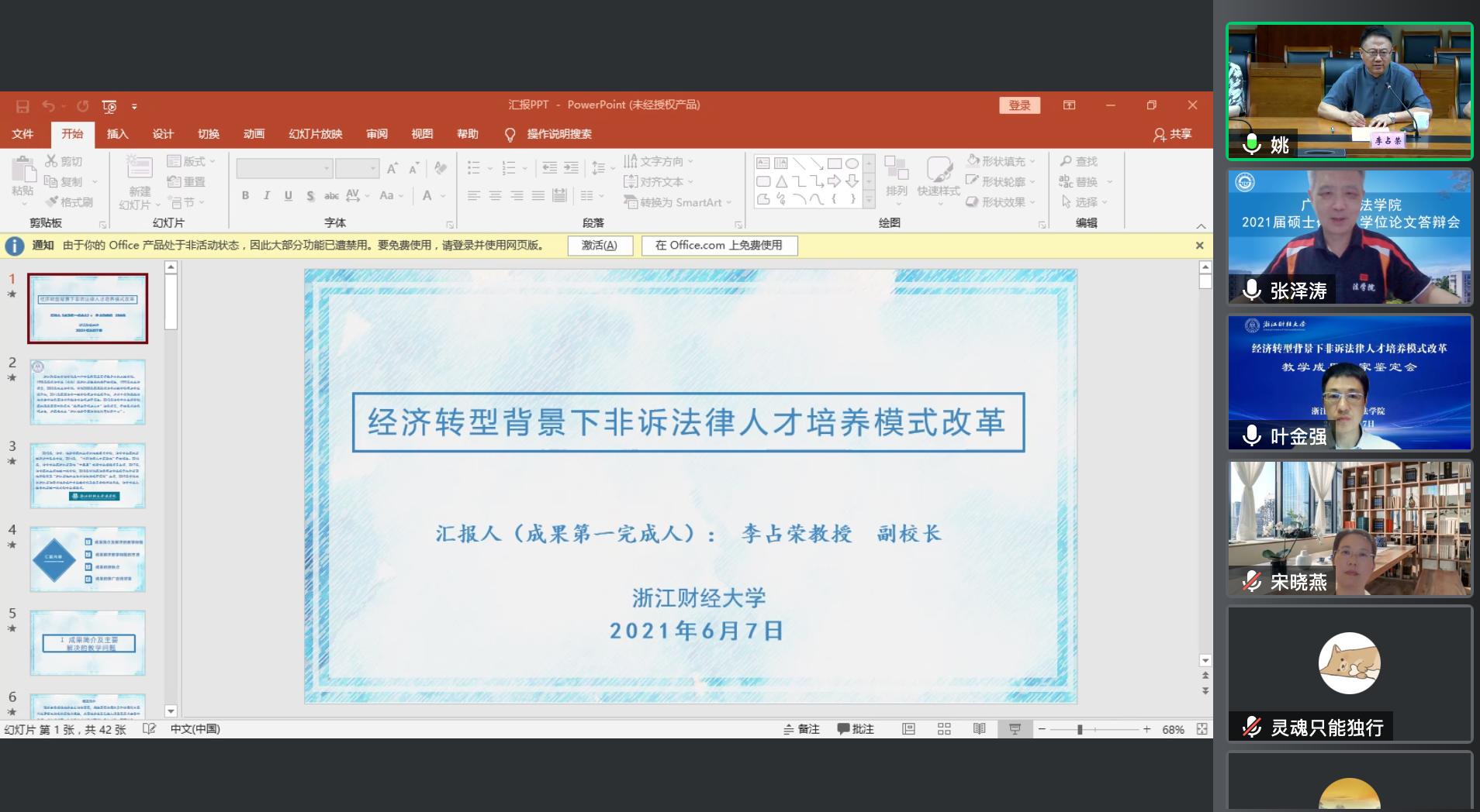 教学成果《经济转型背景下非诉法律人才培养模式改革》线上专家鉴定会顺利召开。参与会议的专家包括中国人民大学副校长、教育部法学类专业教指委委员王轶教授,南京大学色播