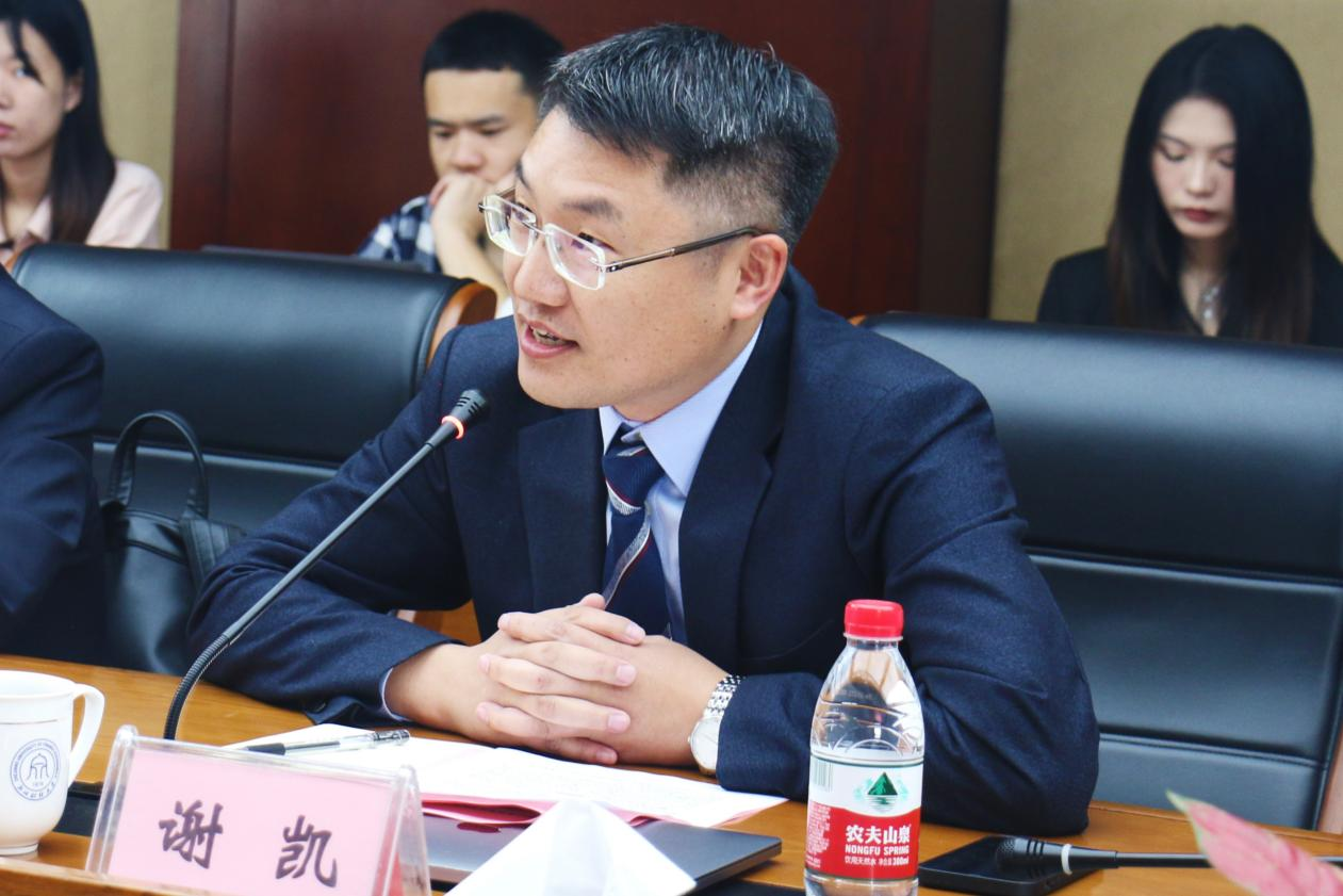 谢凯律师代表北京天驰君泰(杭州)律师事务所致辞。他介绍了律所的基本情况,代表律所表达了对国际经济法研究,尤其是浙江省内国际经济法研究的支持。他提出,律师事务所作为法律实务基地,十分期待同与会专家学者进行更广泛的合作。