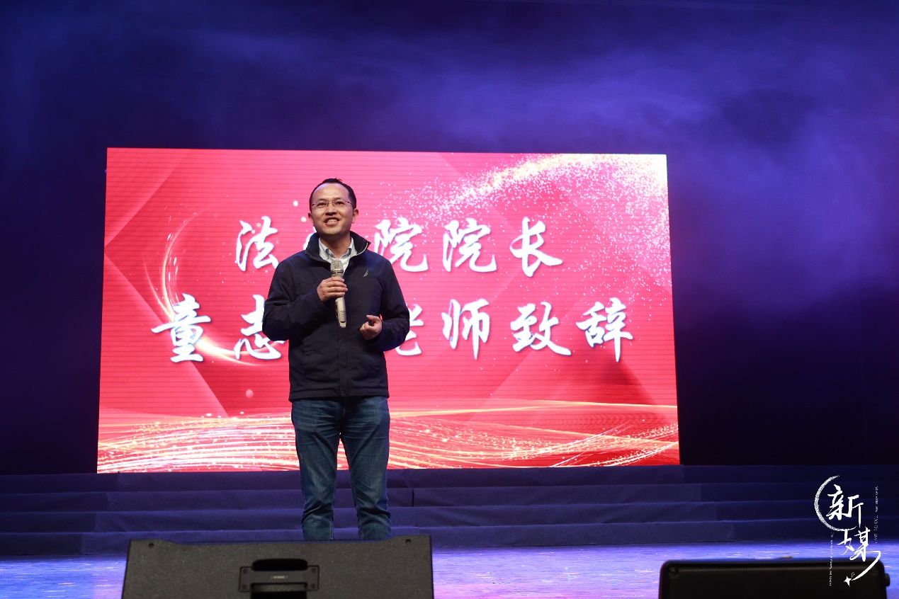 院长童志锋老师表示,在疫情之下,今夜我们的相见是不易的,他要向全体人员致以最真挚的祝福。同时谈到,在这个风险无法确定的社会中,希望同学们能保持交流的能力和读书的热情,坚守住梦想,坚守住公正,坚守住对社会的善意,不断成长。