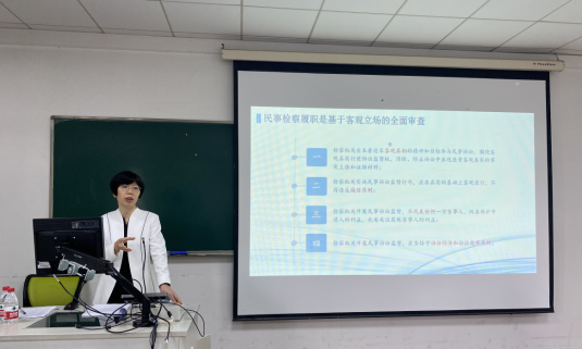 《检察理论与实务》第七讲由杭州市人民检察院傅东红检察官主讲,主题是民事检察制度及职能。首先介绍了民事检察制度的历史发展。接着讲解第六检察部的履职原则,并结合房屋买卖合同纠纷、借款合同纠纷、申请执行监督案、健康权纠纷案等具体案例,生动阐释民事检察具体职能。最后将学生们带入体会检察官角色,根据情景案例依法做出判断提出检察建议。通过这堂课,让学生们深刻理解检察工作的精细和谨慎,也感悟到了对权力时刻保持敬畏的必要性,同时也提醒未来踏上工作岗位更须要谨慎合理行使权力,做一名遵守法律、敬畏权力的法律人。