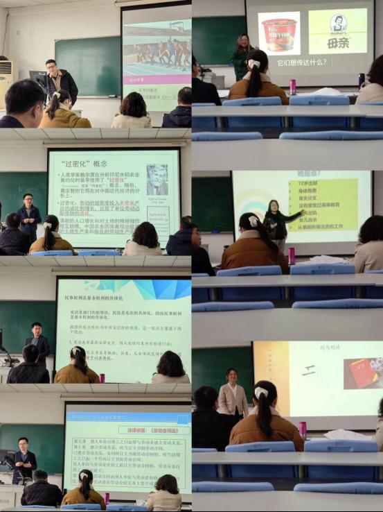 七位教师们准备充分,现场从赛前准备的两个参赛内容中随机抽取一个进行20分钟的课堂教学演示。他们的教学内容完整规范,讲解清晰流畅,展现出扎实的教学基本功和较高的专业素养,并展示了各自的授课特色与优势。七位老师或慷慨激昂、或逻辑严密,或循循善诱,或步步设问,将课堂推向一个又一个高潮。屏幕上展示的课件更是五彩纷呈、内容丰富。