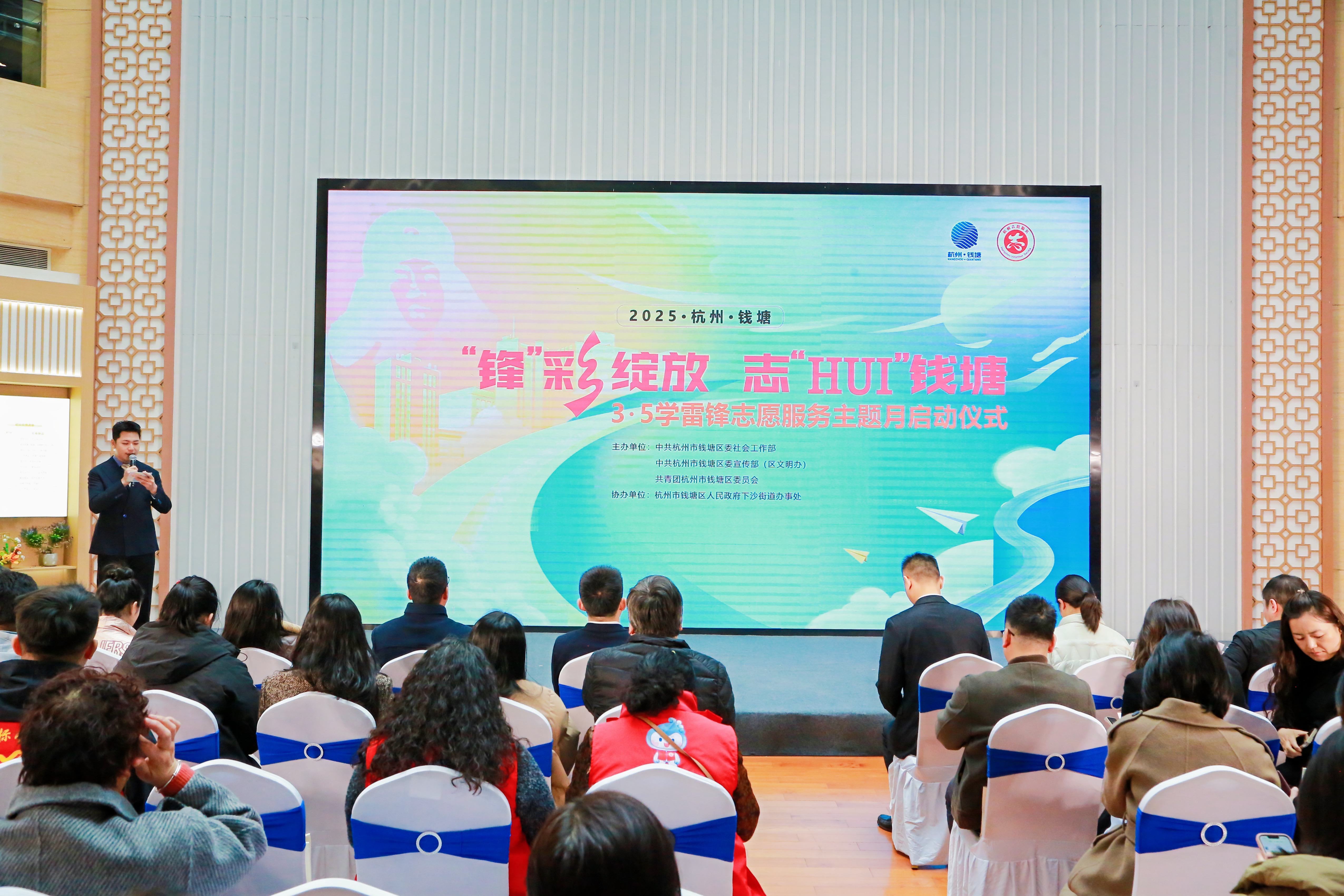 2025年3月4日下午,在下沙街道党群服务中心举办的钱塘区3.5学雷锋志愿服务主题月启动仪式上,社工系教工支部发起的“‘倾听者’流动儿童成长向导深度陪伴志愿服务项目”获评钱塘区2025年十大重点志愿服务项目,刘芳老师代表支部上台认领。