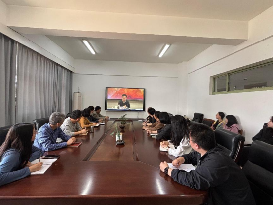 院长唐勇、院党委书记丁洪、院党委副书记胡哲、各系主任(含副主任)、行政老师及部分学生参加。