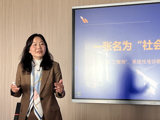 针对在场多数社会工作专业学生,于秀红老师指出,社会工作者如同“社会生态的工程师与医生”,不仅服务于个体,更致力于系统性修复与建设。恩宝基金会项目负责人李越老师以社区长者健康管理项目为例,展示了社工如何通过“五社联动”机制,整合医疗、志愿者等资源,为老人提供身心灵全方位支持。李越老师表示:“社工的价值在于看见人、理解人、改变人。”