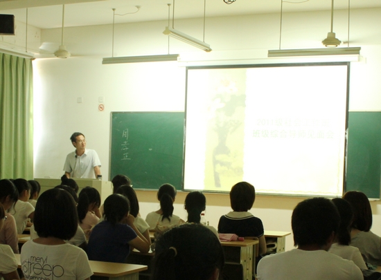 要求新生在暑假期间选择卡耐基《人性的弱点》、约翰逊《谁动了我的奶酪》等名著进行阅读思考,对他们进行了始业教育。见面会后,各班学生迫不及待地上台演讲,其中法3的吴晓丽和王慧娟同学更是在《人性的弱点》的基础上,或主观或客观地阐述了他们的读书心得和对大学生活的憧憬。他们从人性的不足中学会了思考:要懂得尊重,宽以待人,记恩忘仇,施恩勿望回报。
