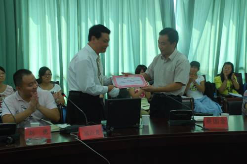 党总支书记蔡国金为福山龙教授颁发了客座教授聘用证书,并为其佩戴色播