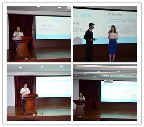 接下来是优秀毕业生报告会,11级社会工作专业提前一年毕业的14届校友徐赛讲述自己大学里的经历,并用事例诠释了对个体发展的重要性,希望在校生好好规划自我,努力成长;优秀毕业生王祉浩讲述自己考研的经历,衡量自我实力,找准定位,努力坚持;优秀毕业生吴恩惠和宋国彪,讲述自己在校体会和面试历程,一个感人肺腑,一个风趣幽默,都很好的为在校生提供了丰富的面试经验,“别让这座城市留住了你的青春,却没能留住你。”他们的肺腑之言和求职经验给低年级的学生们带来了灵感与启发,给予他们在未来之路上更多的思考。