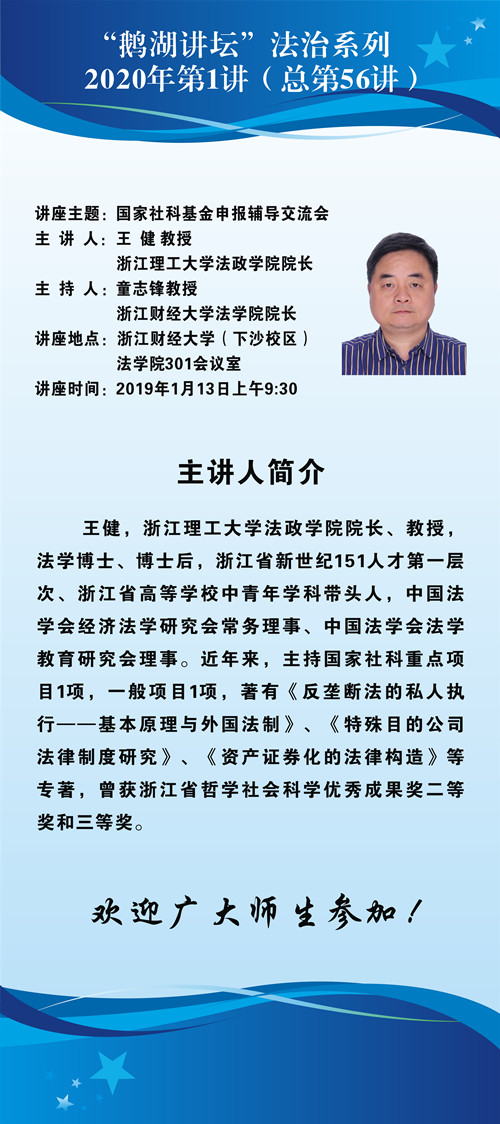 “鹅湖讲坛”法治系列2020年第1讲(总第56讲)浙江理工大学法政色播 院长王健教授