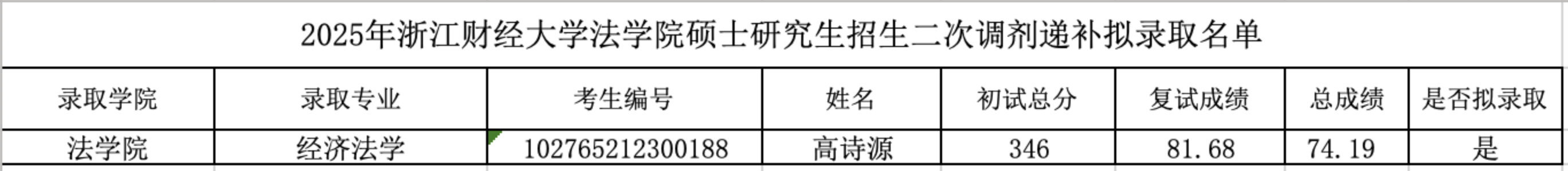 因色播 招生计划调整,经济法学硕士研究生新增1个招生名额,现将递补拟录取名单公示如下,现予以公示(公示期7天)。如有异议,请联系色播 研究生办公室,联系电话:0571-87557364,联系人:封老师。