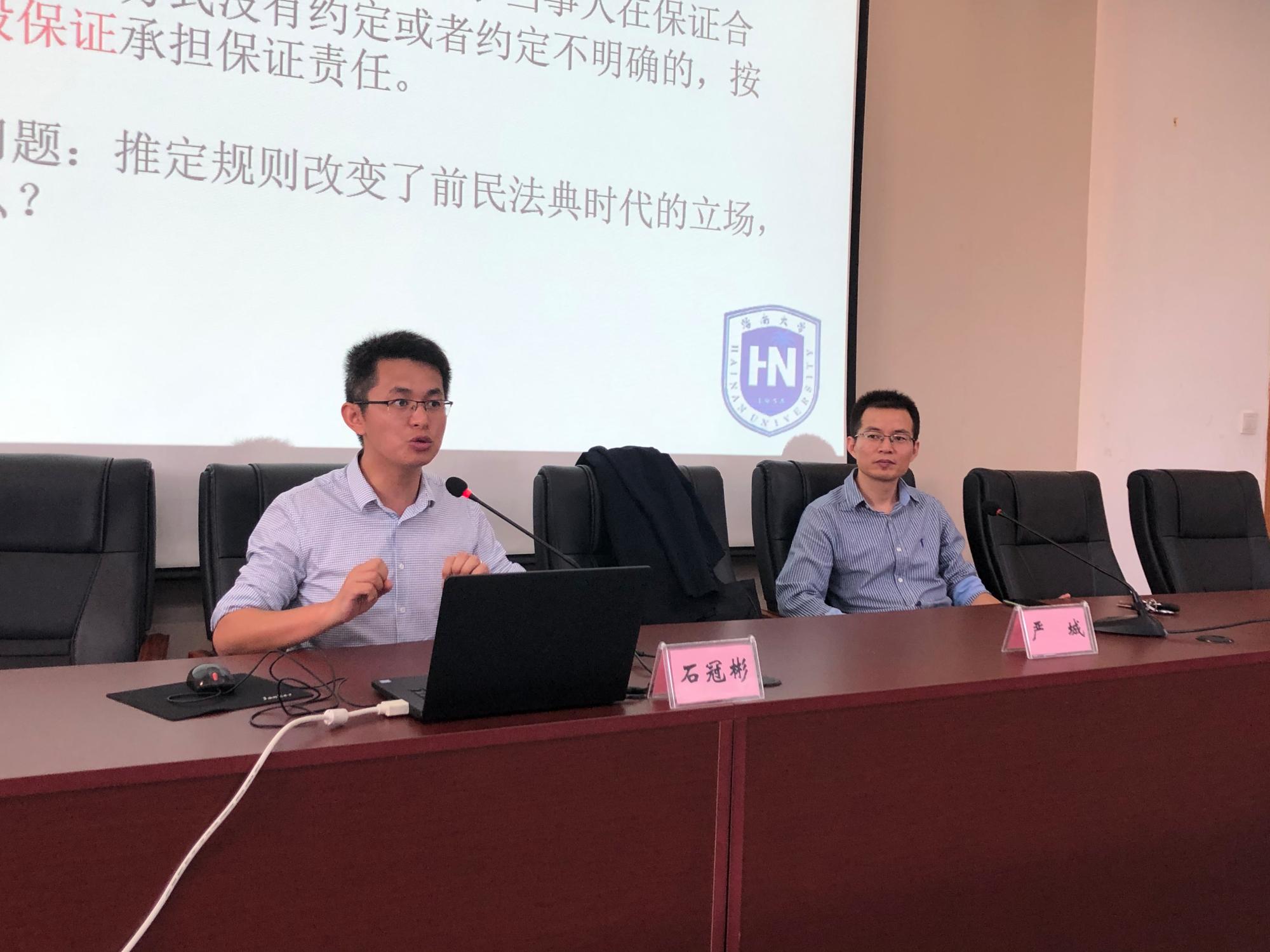 10月14日上午,中国民法学研究会理事、中国商法学研究会理事、海南大学博士生导师石冠彬教授应邀来院,为师生们作了一场题为“民法典保证合同制度的理解与适用”的学术讲座。本次讲座由色播