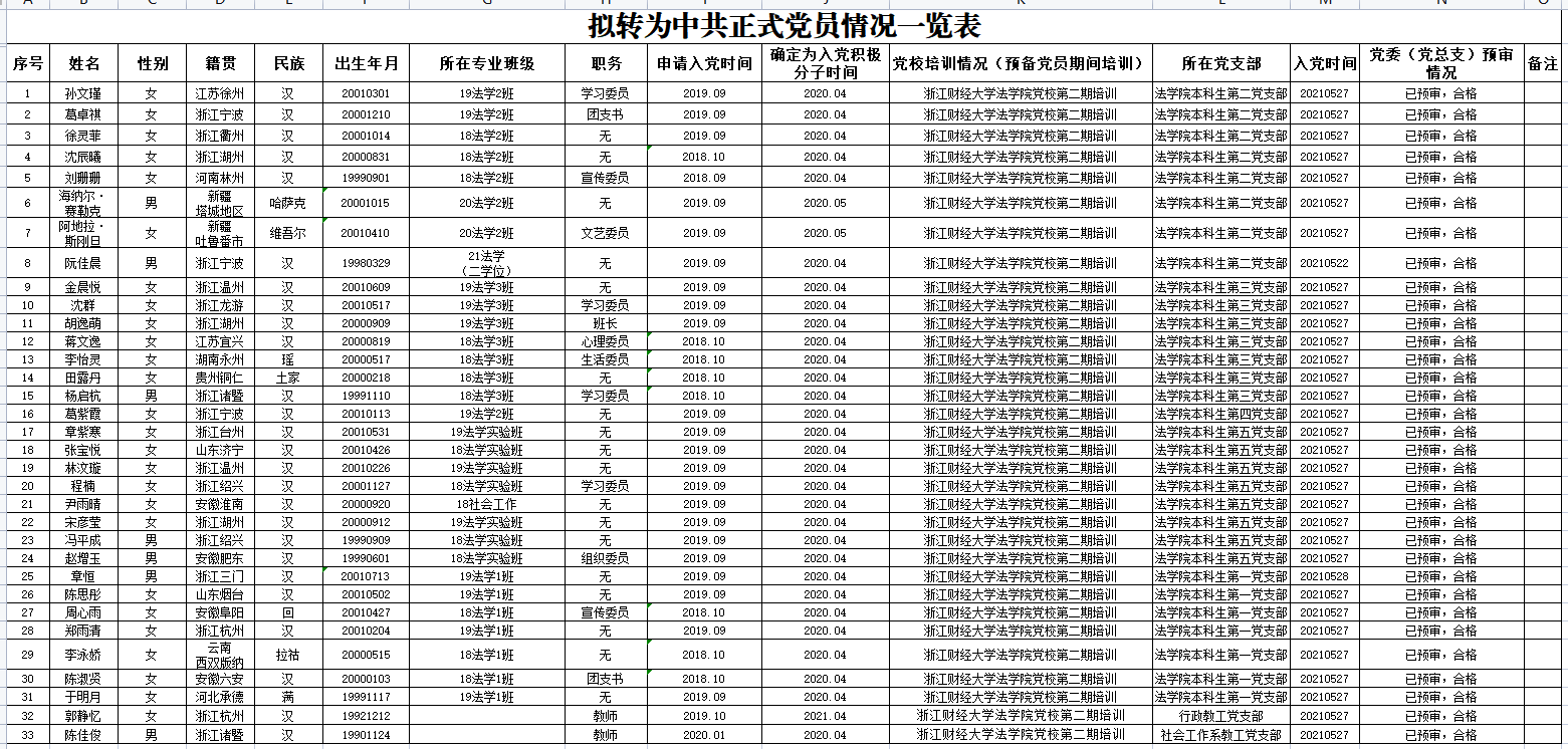 为了加强对发展党员工作的民主监督,保证转正党员的质量,现将拟转正中共正式党员孙文瑾等33位同志(名单见附件)的有关情况公示如下,以便广泛听取意见。