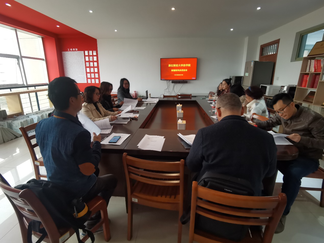 党委书记朱丹带领各系、各办公室认真学习了《关于加强和改进新时代师德师风建设的意见》《新时代高校教师职业行为十项准则》《色播