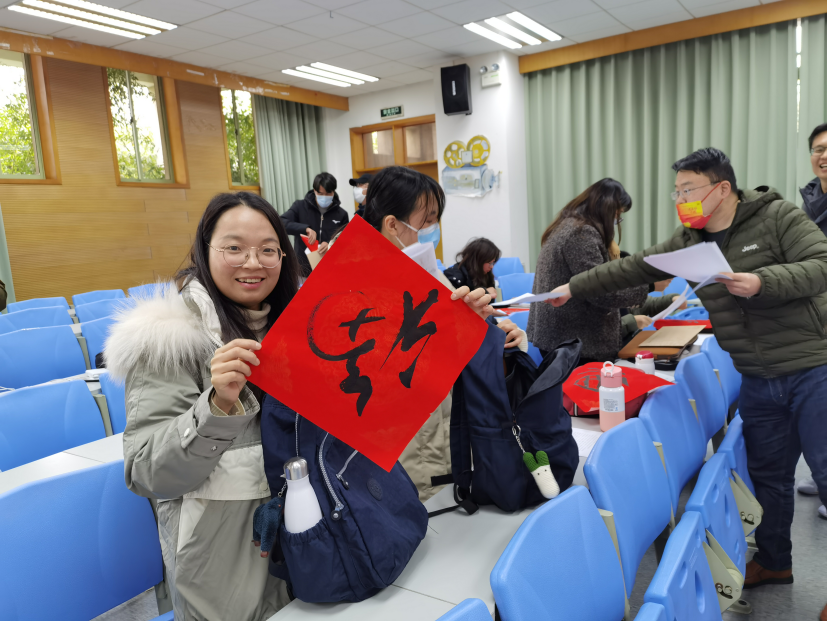 为喜迎2022年的到来,12月28日下午,色播 分工会在101会议室举行“寅虎送福迎新年”活动,色播 党政、工会领导为全体老师送上书法手写“福”字。