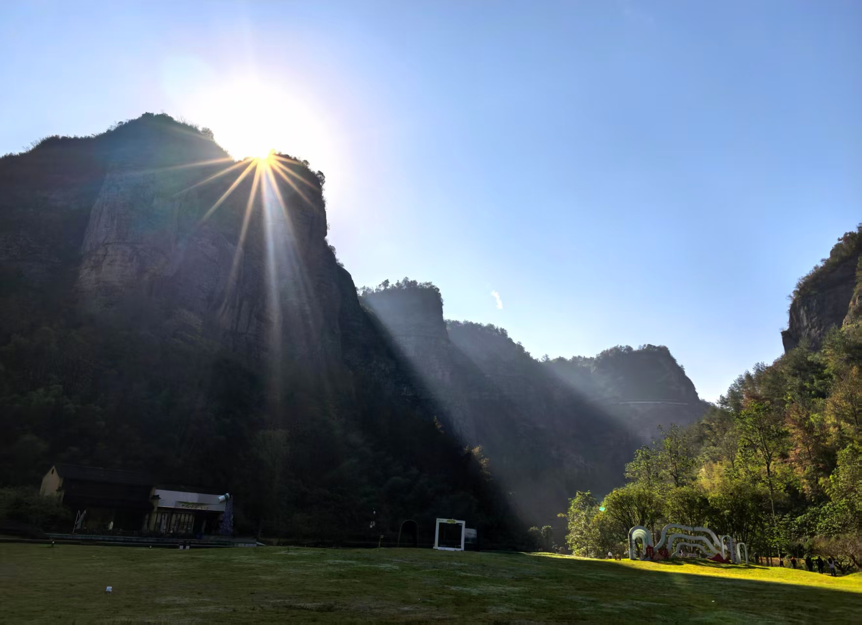 天朗气清,惠风和畅。大巴车满载着欢声笑语,驶向那片丹霞耸翠的所在。抵达山脚,十九座山峰次第排闼而来,宛如一道道翡翠屏风,在澄澈暖阳的映照下,更显峭拔灵秀。老师们暂别书斋的静谧与课堂的严谨,瞬间融入了这山野的怀抱,脸上洋溢着轻松与期待的笑容。