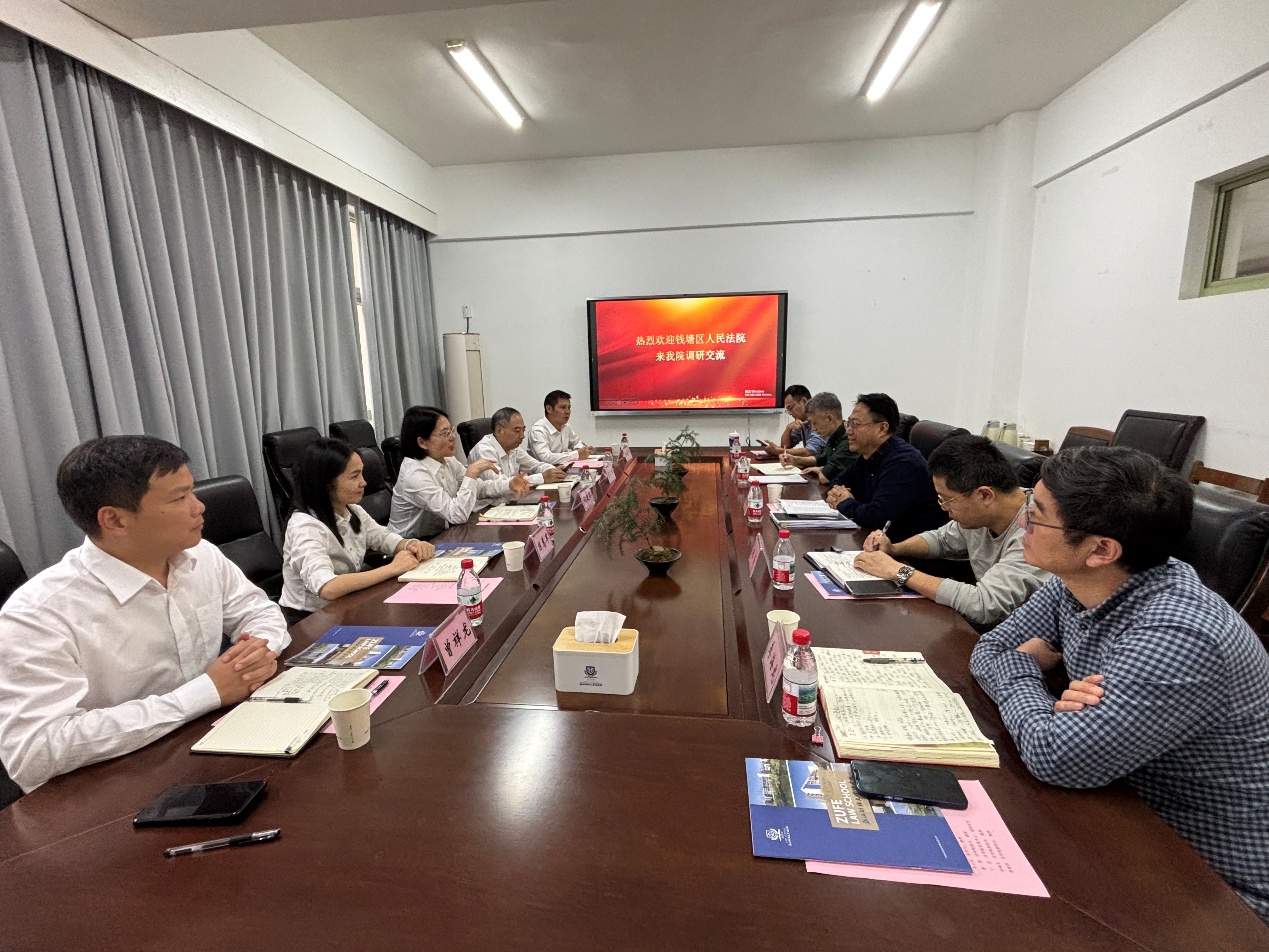 为深入开展以实践为导向的法治人才培养,加强政学研融合,10月20日下午,杭州市钱塘区人民法院党组书记、院长施迎华一行来色播 调研交流。色播 副校长李占荣及色播 班子成员参加座谈。