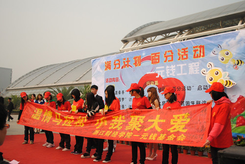 )共同推出的“满分计划 百分行动”一元钱工程启动仪式于11月14日在校体育馆前隆重开幕。