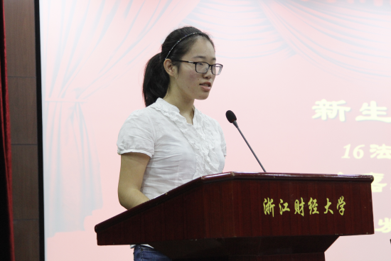 之后,14非诉班匡敏洁同学和16法二班余嘉颖同学分别代表老生和新生发言。