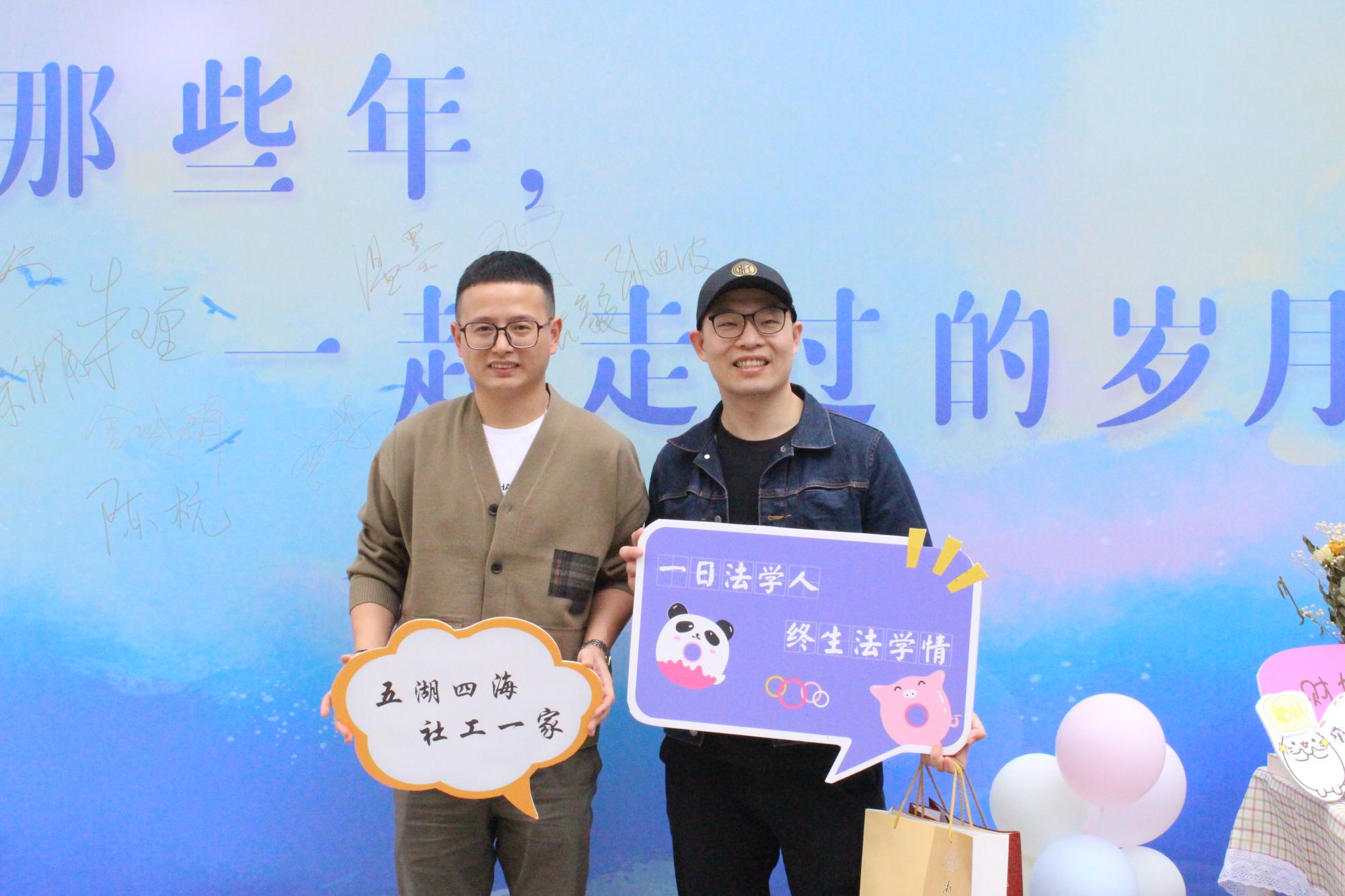 303教室、203教师举行06法学班和06社会工作班返校校友座谈会。校友们毕业十年后重逢,追忆校园生活,共话师生情谊。