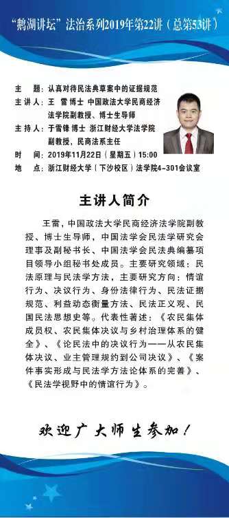 “鹅湖讲坛”法治系列2019年第22讲(总第53讲)中国政法大学民商经济色播 王雷副教授