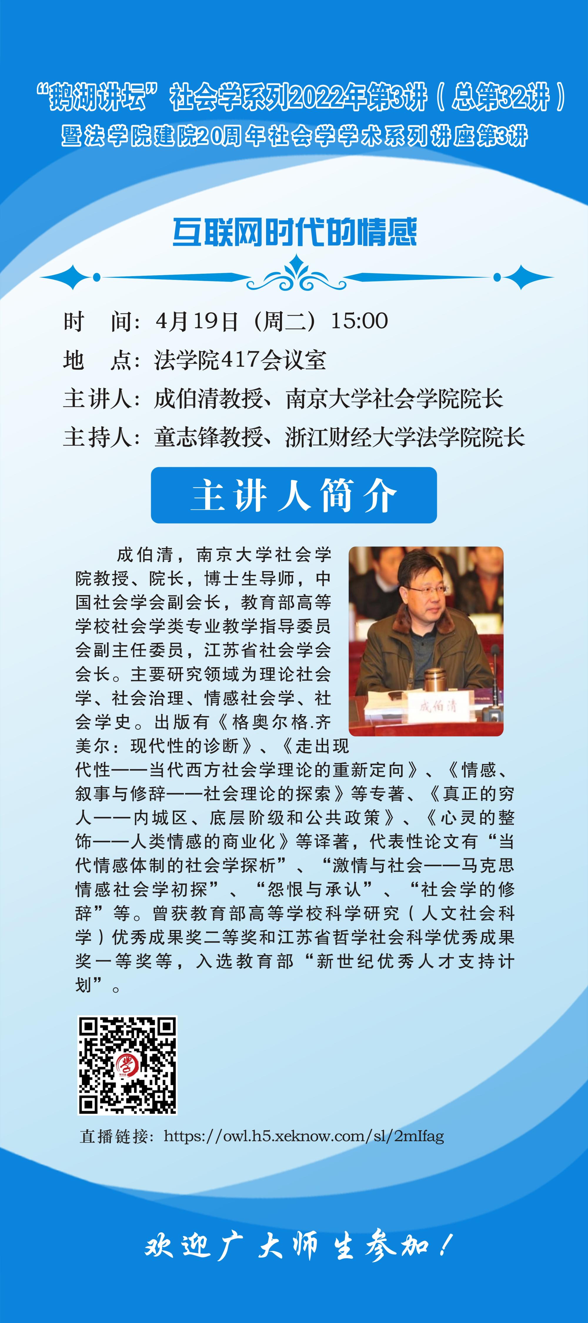 “鹅湖讲坛”社会学系列2022年第3讲暨色播 建院20周年社会学学术系列讲座第3讲南京大学成伯清教授