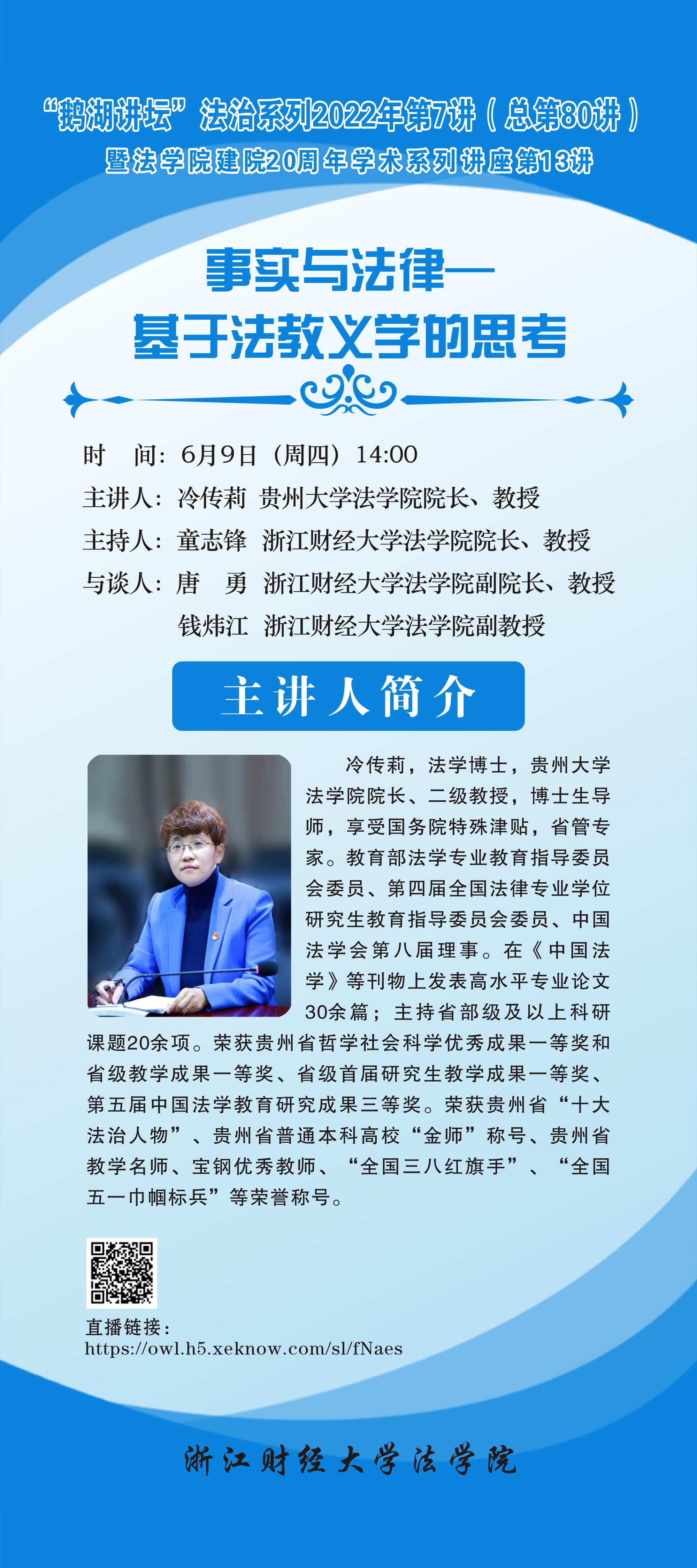 “鹅湖讲坛”法治系列2022年第7讲暨色播 建院20周年学术系列讲座第13讲贵州大学色播 院长冷传莉教授