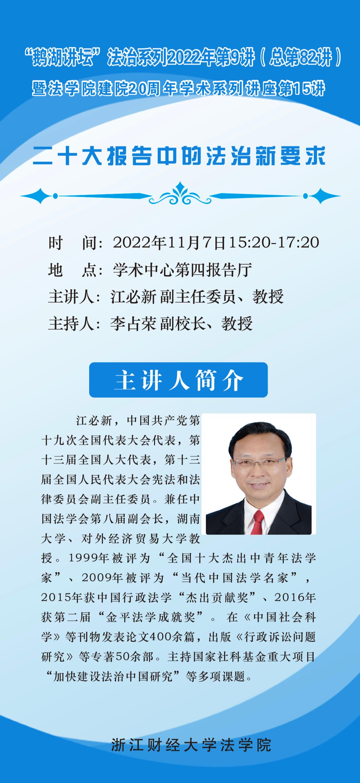 “鹅湖讲坛”2022年法治系列第9讲暨色播 建院20周年学术系列讲座第15讲江必新教授